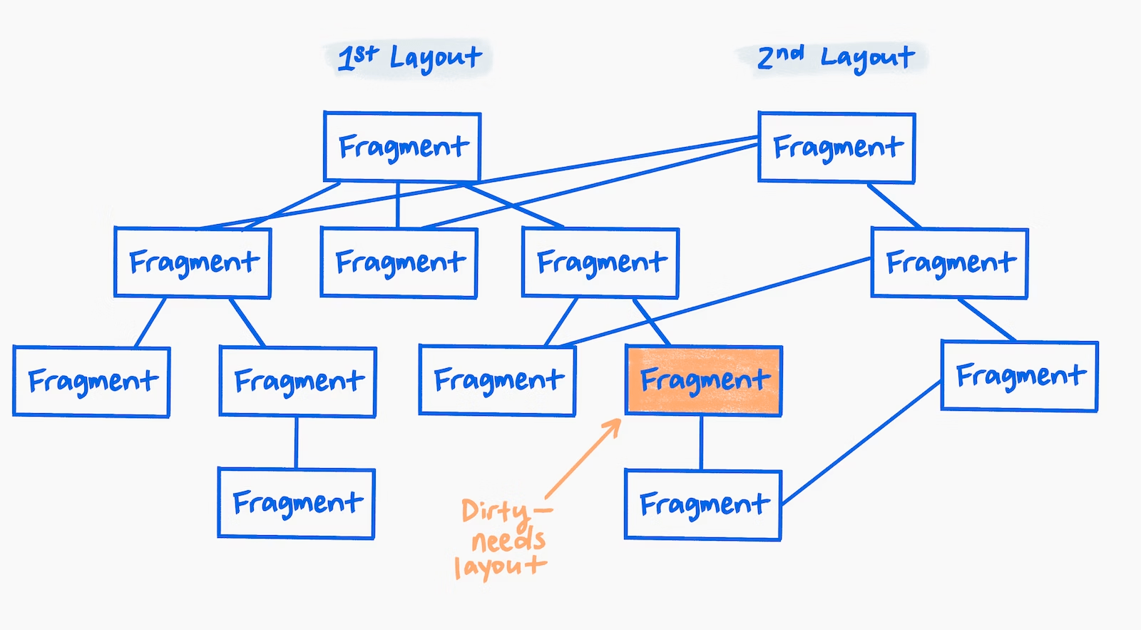 이 트리는 layout이 실행될 때마다 새로 생성되고 캐싱이 가능합니다. layout 과정의 출력인 변하지 않는 fragment 트리가 등장함으로써 입력과 출력이 분리된 잘 정의된 파이프라인으로 개선할 수 있었습니다.