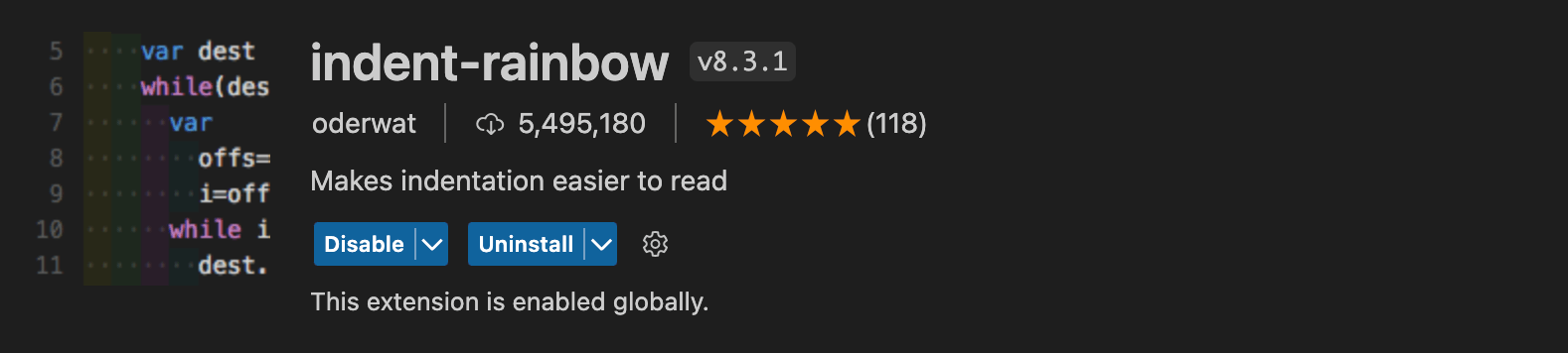 코드의 들여쓰기 단계별로 다른 색상을 제공하여 가독성을 높여줍니다.